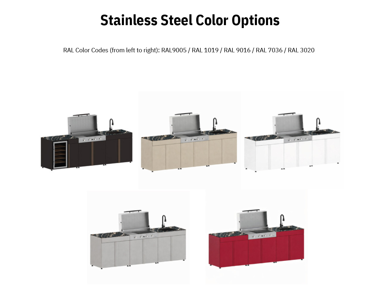 RAL 1019 Grey beige, RAL 3020 Traffic red, RAL 7036 Platinum grey, RAL 9005 Jet black, RAL 9016 Traffic white