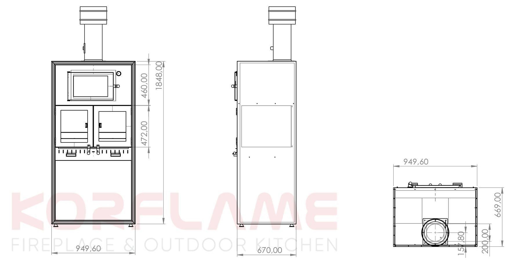 - Tillagningsyta (vedeldad): 78 × 57 cm